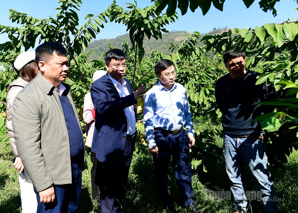 Đồng chí Hoàng Gia Long, Ủy viên Ban Thường vụ Tỉnh ủy, Phó Chủ tịch UBND tỉnh đến thăm vùng sản xuất Na tại xã Mai Sơn.