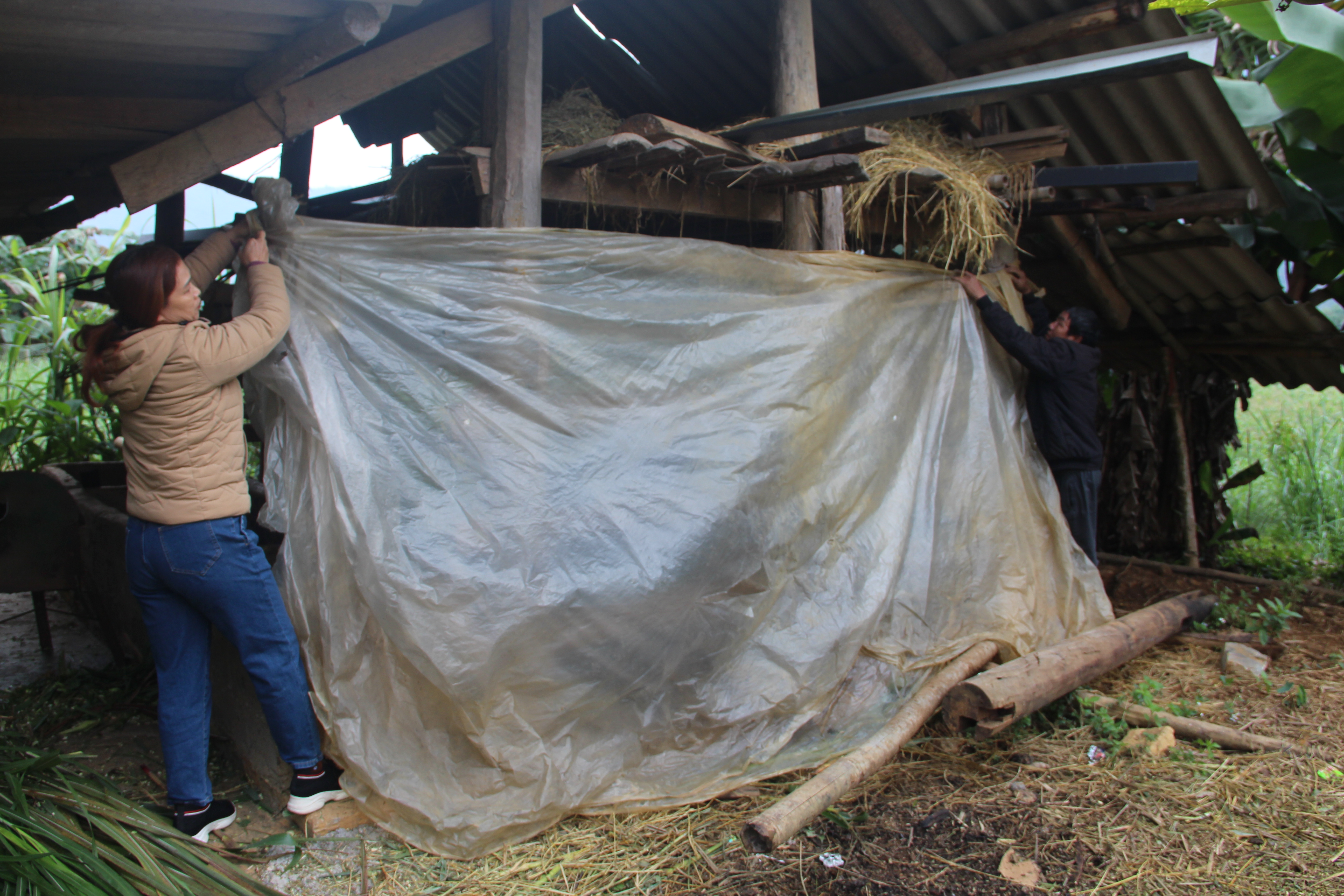 Gia đình anh Tráng A Khánh thôn Chẩu Quân xã Bình An, đã Chủ động che chắn chuồng trại.